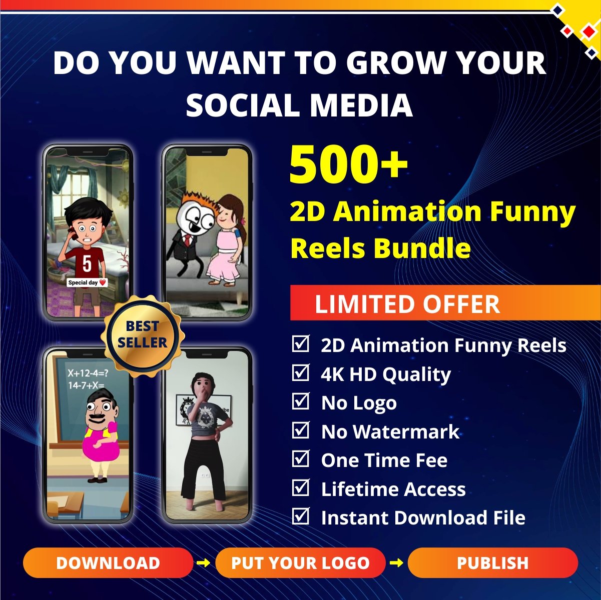 👍 Get 500+ 2D Animated Funny Reels