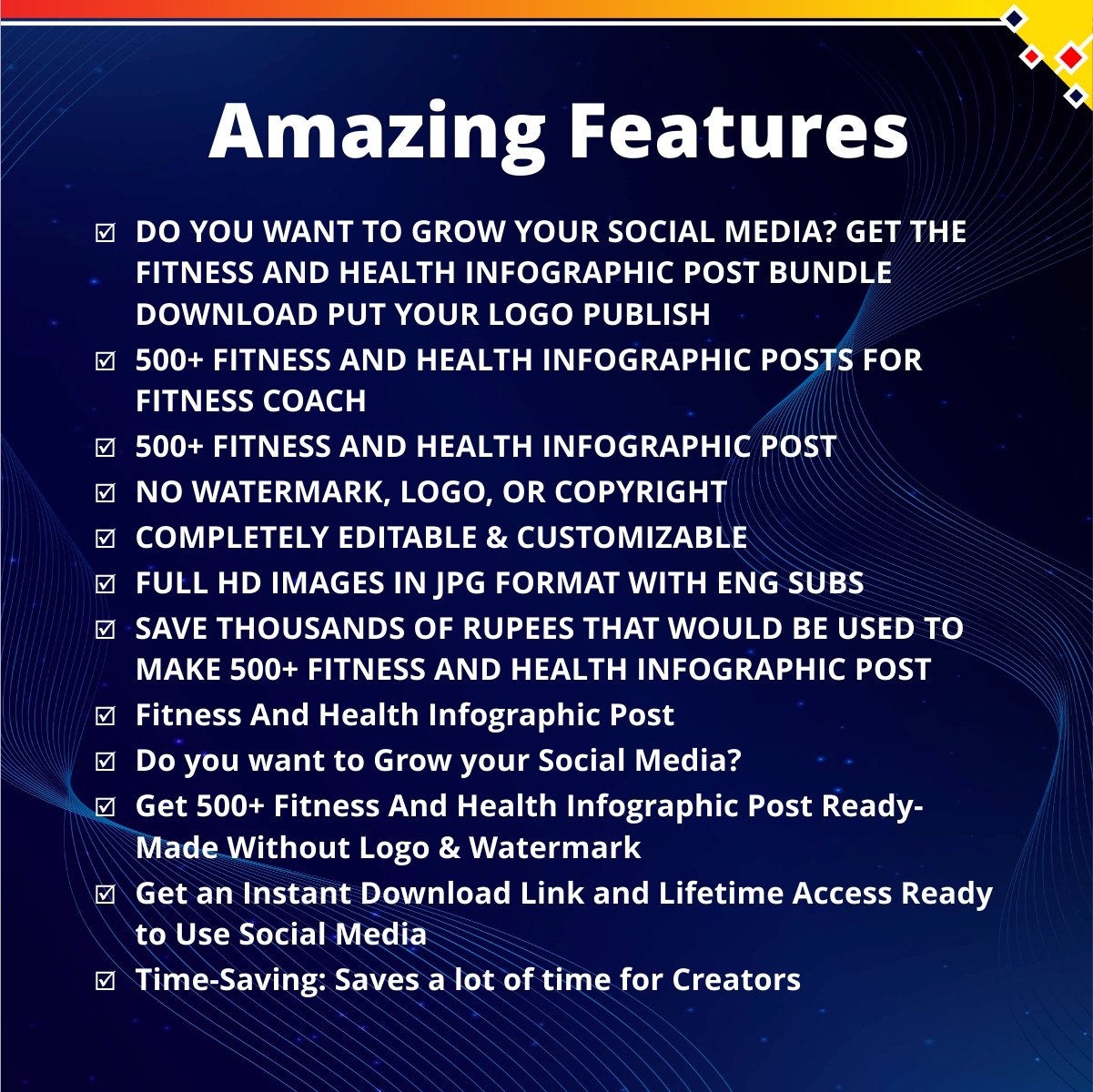 • SAVE THOUSANDS OF RUPEES THAT WOULD BE USED TO MAKE 500+ FITNESS AND HEALTH INFOGRAPHIC POST